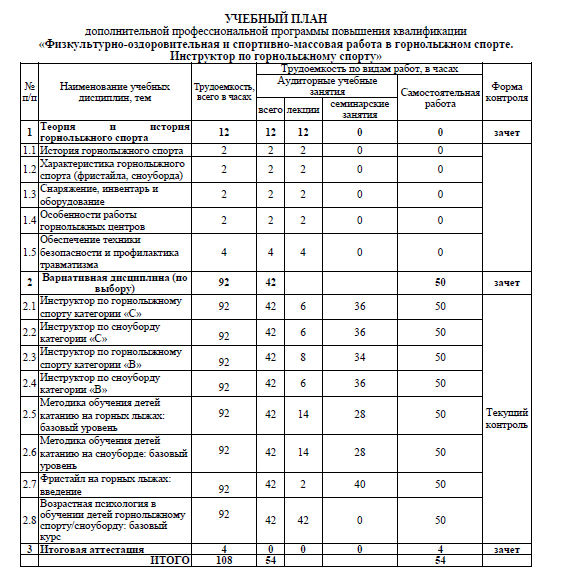 ПК "Физкультурно-оздоровительная и спортивно-массовая работа в горнолыжном спорте. Инструктор по горнолыжному спорту"